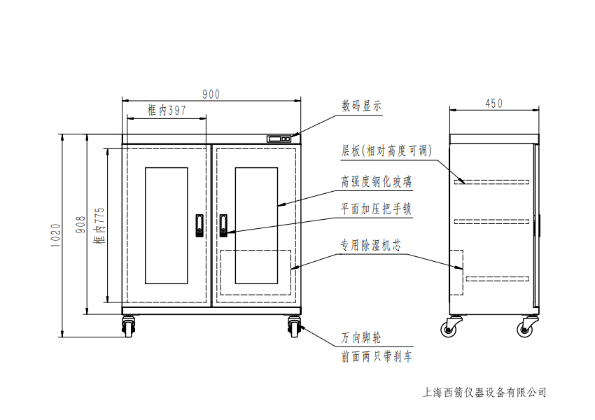 1.西箭品牌防潮箱體選用厚度正1.0mm鋼板制作,鋼板硬度高,重要部件采用正3.0mm鋼板, 箱體結構符合設計規范,結構承重性強。