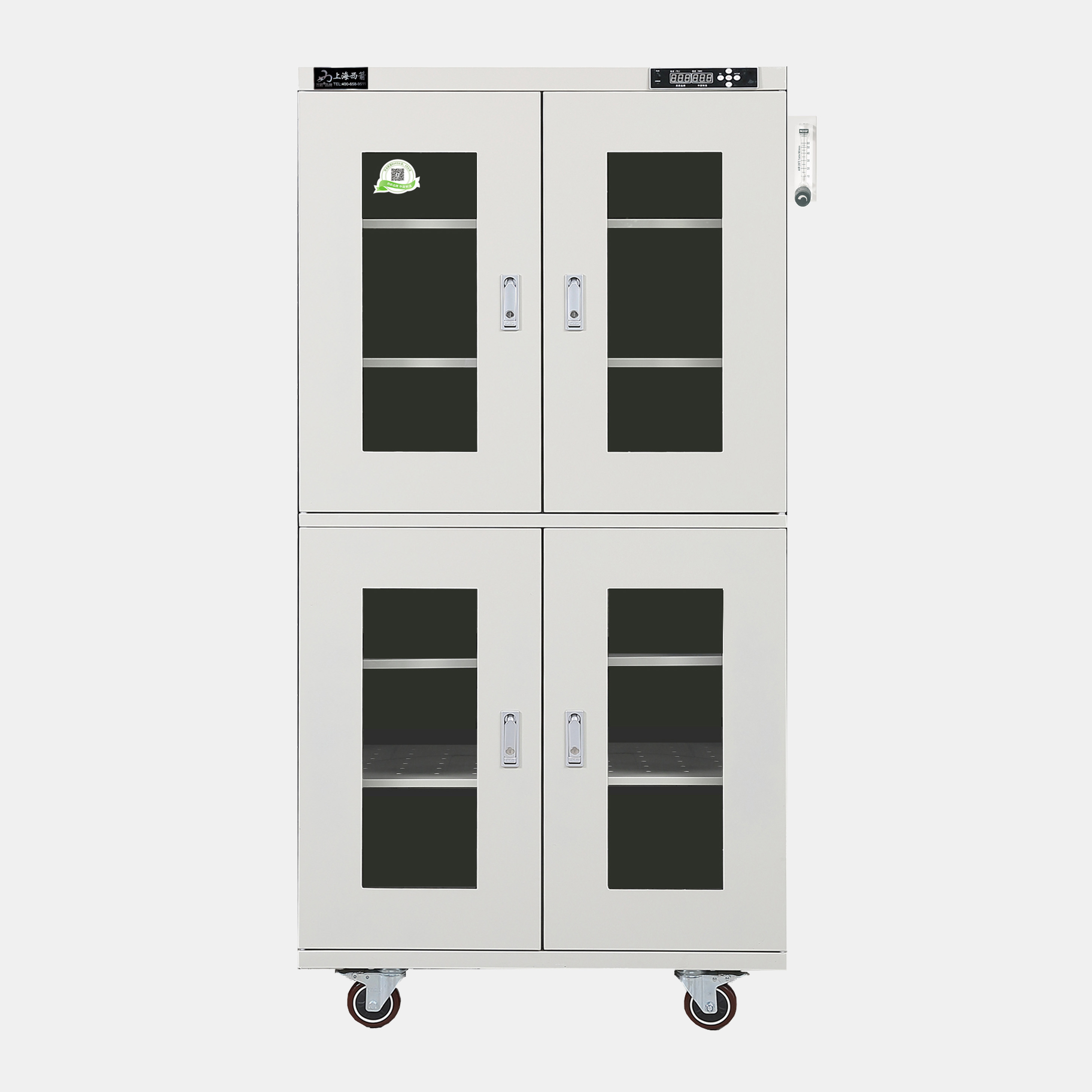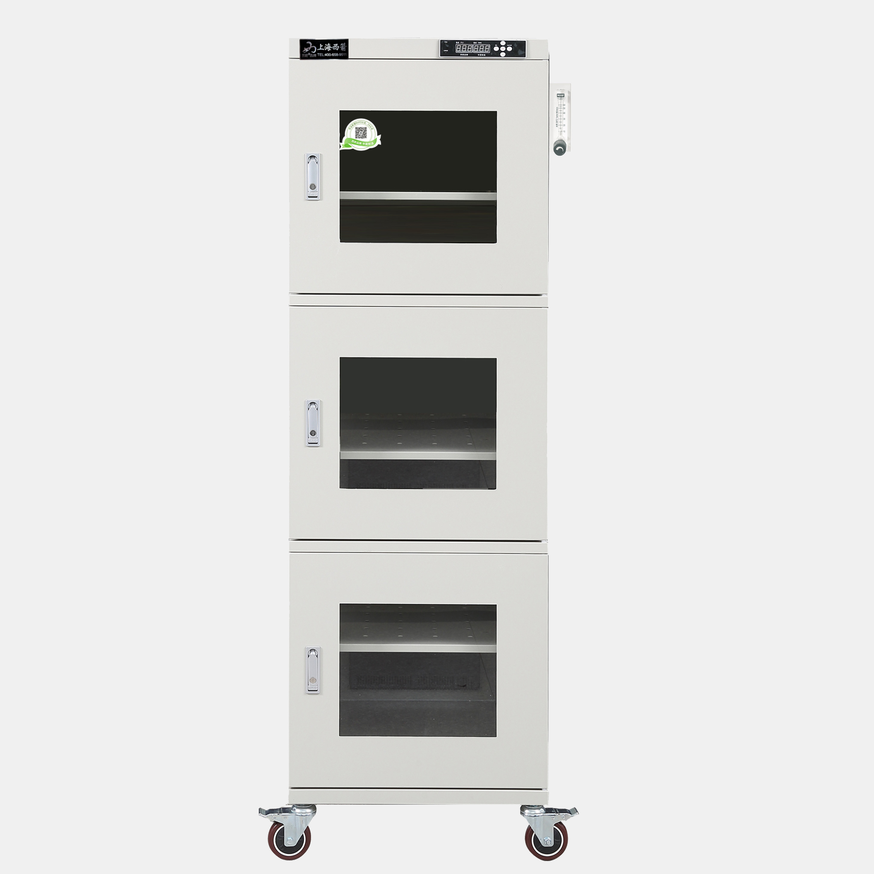 全系列產品可以選配加裝智能溫濕感應式報警系統,通過WIFI、GPRS通訊模塊與手機實時聯網,箱內溫濕度手機實時收到警報信息,通過電腦查看防潮箱溫濕報表。也可選配RS232或者USB串口與計算機連接,記錄溫濕度曲線數據變化。電子防潮箱可用于濕度敏感類材料的防潮保管,如IC等濕度特別敏感的材料存放,可選購防靜電,*銹鋼制作。防潮箱箱體保修五年,*生免費提供技術咨詢,并且可以根據客戶要求量身定制。